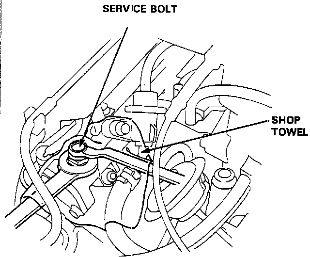 c. Place a rag or shop towel over the 6mm service bolt and SLOWLY loosen the 6mm service bolt one complete turn.