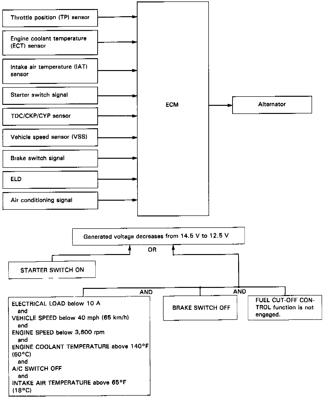control system within the ECM changes the voltage generated at the alternator in accordance with the driving conditions.