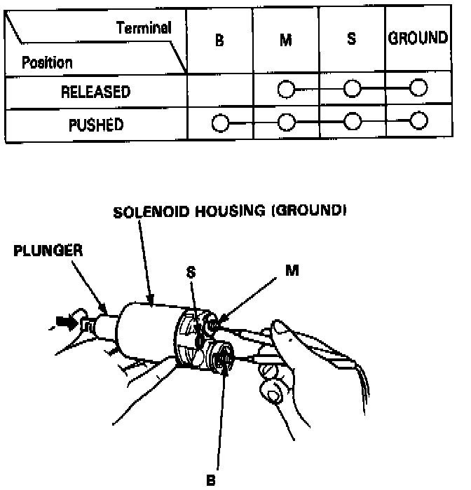 Check for continuity between the terminals in each solenoid plunger position according to the table.