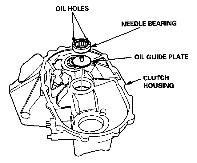 3. Position the oil guide plate and new needle bearing in the bore of the clutch housing.