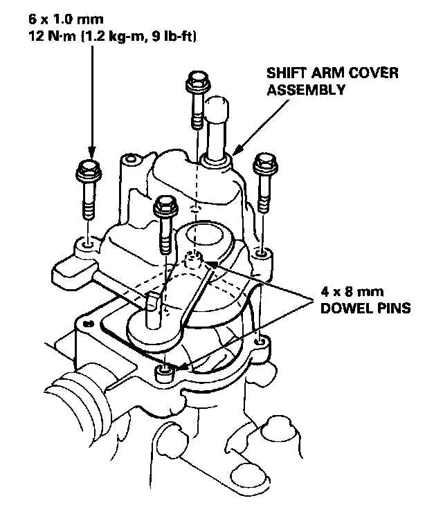 NOTE: During reassembly, grease all gliding parts.1. Remove the shift arm cover assembly.