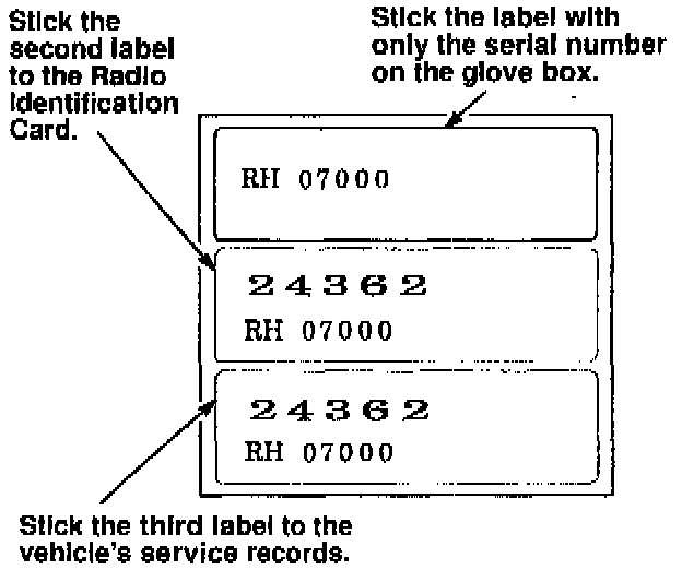 2. Stick the remaining two labels on the Anti-Theft Radio Identification Card and on the vehicle's service records.