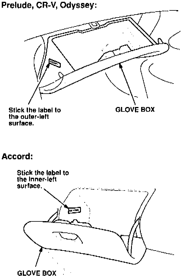 During Pre Delivery Inspection, stick the label with only the serial number on the glove box. If the radio code ever needs to be retrieved through the HONDANET 2000 system, this will save you the time and labor of removing the audio unit to record the serial number.