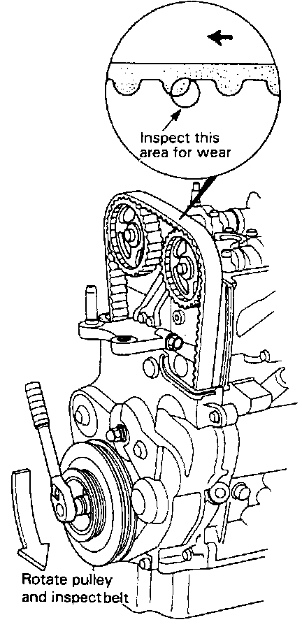 7. Inspect the timing belt for cracks and oil soaking.