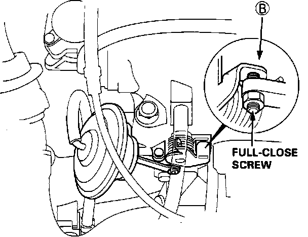 4. With engine idling, be sure "B" of the IAB control valve is in close contact with the full-close screw.