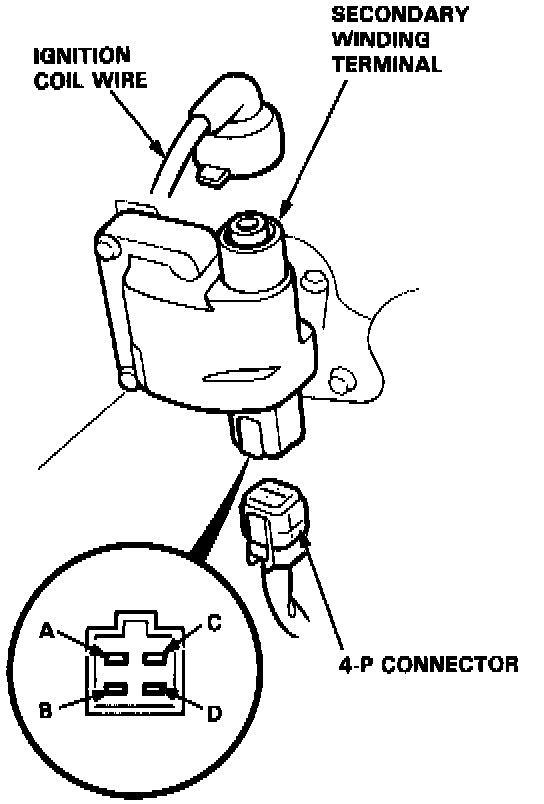 3. Using an ohmmeter, measure resistance between the terminals. Replace the coil if the resistance is not within specifications.
