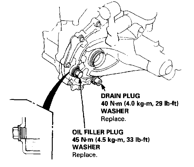 4. Reinstall the drain plug with a new washer, and refill the transmission oil to the proper level.