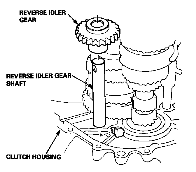 4. Install the reverse idler gear and reverse idler gear shaft in the clutch housing.