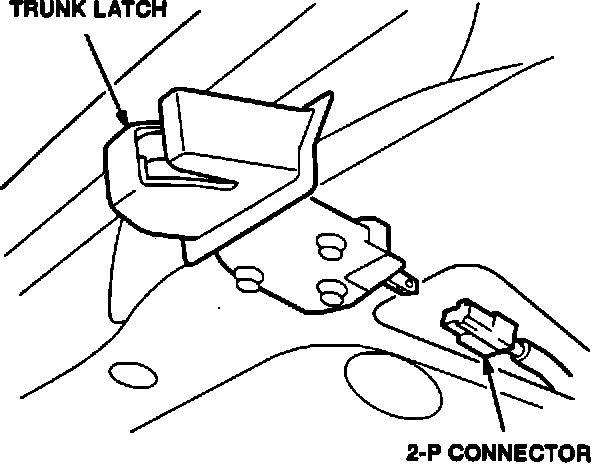 1. Open the trunk lid, and disconnect the latch switch 2-P connector.