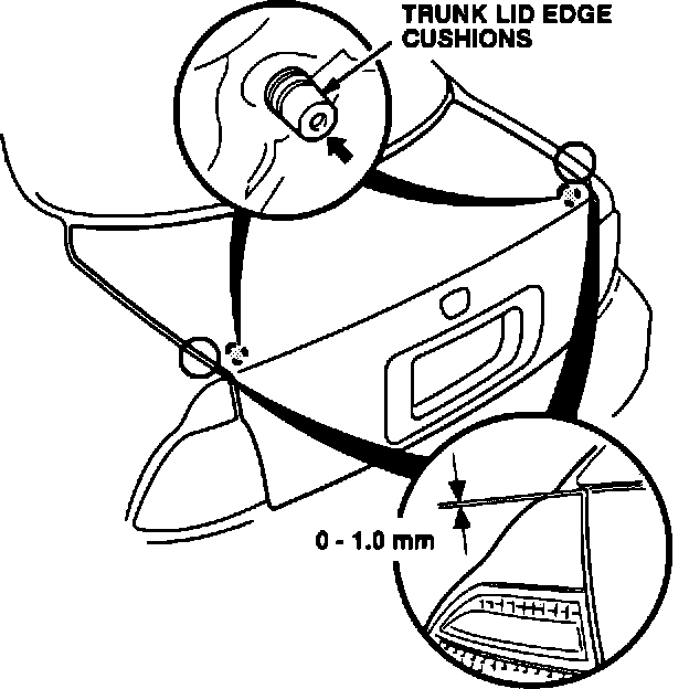 7. After the adjustments, check the trunk lid alignment with the rear fenders. The trunk lid should be no more than 1.0 mm above the rear fenders.