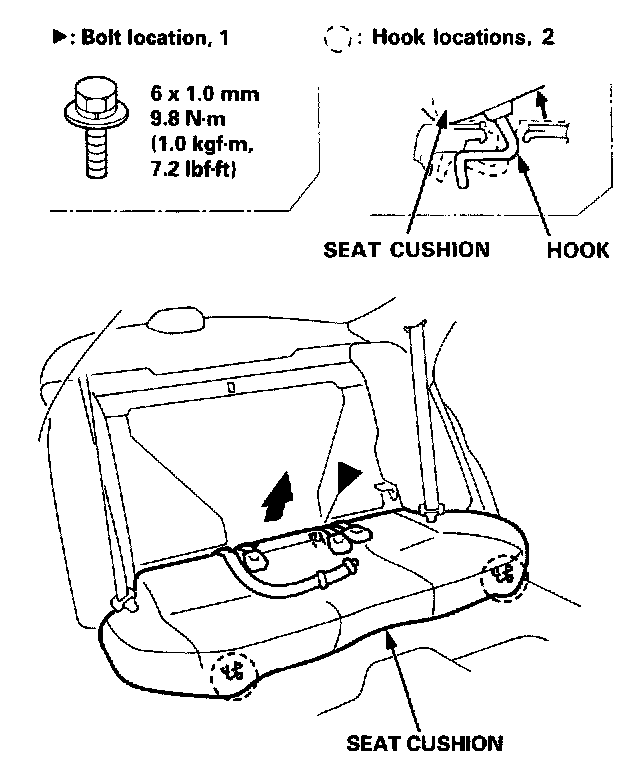 Rear Seat ReplacementNOTE: Take care not to scratch the seat covers and body.