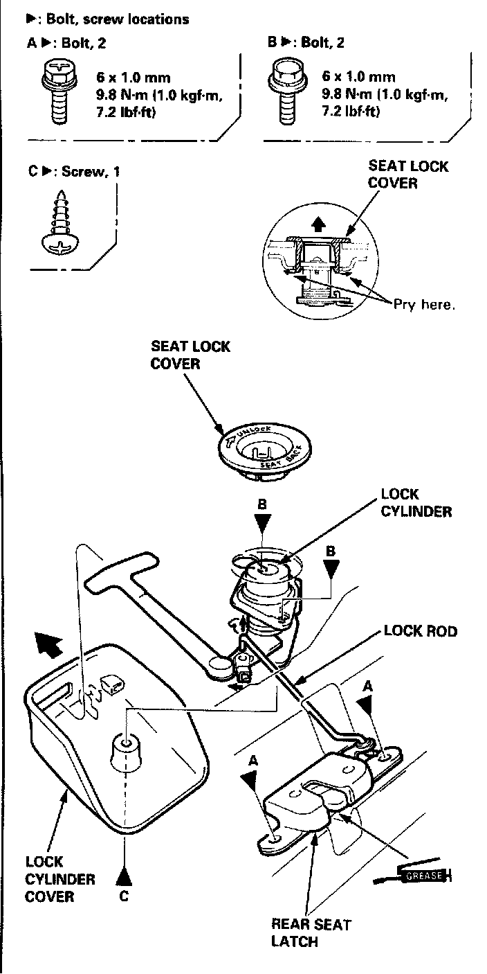 Rear seat latch/Lock cylinder removal: