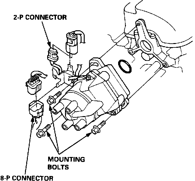 1. Disconnect the 2-P and 8-P connectors from the distributor.