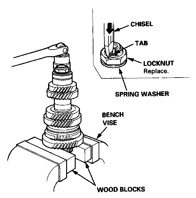 1. Securely clamp the countershaft assembly in a bench vise with wood blocks.