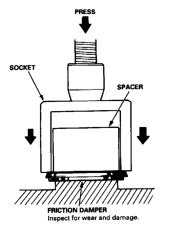 4. Remove the friction damper from the spacer using a press and a socket as shown.