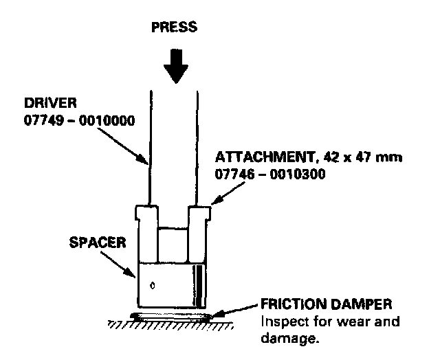 3. Install the friction damper on the spacer using the special tools and a press as shown.