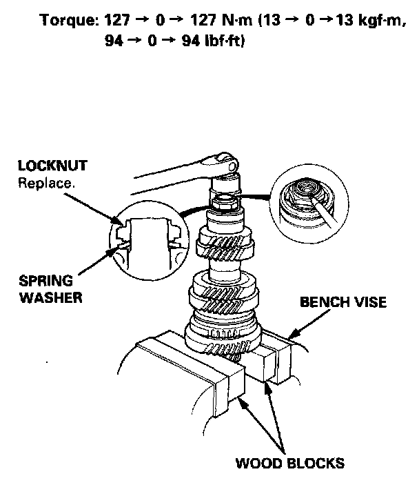 7. Tighten the new locknut to the correct torque, then stake the locknut tab into the groove.