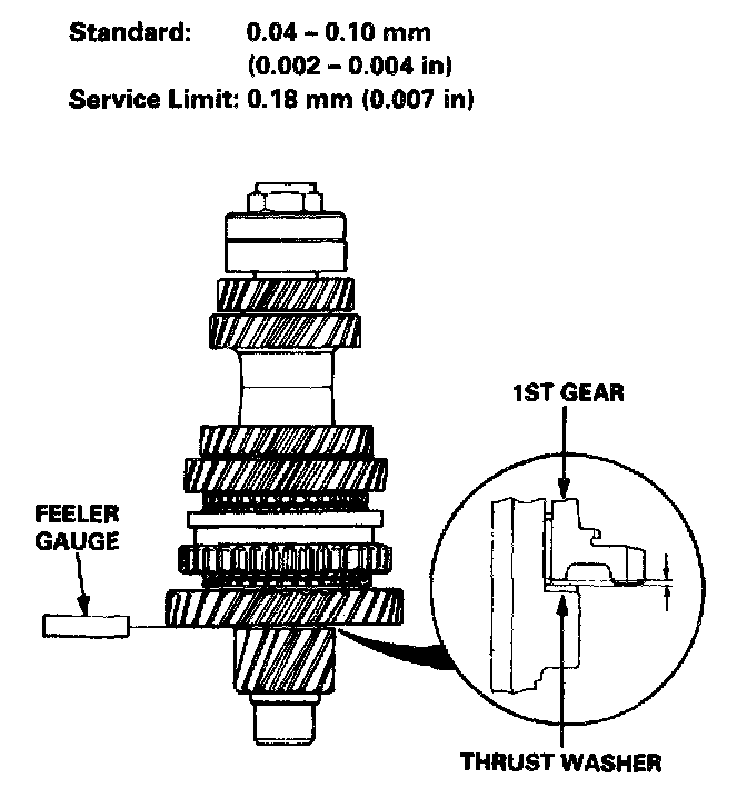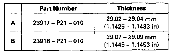 2. If the clearance is more than the service limit, select the appropriate thrust washer for the correct clearance from the chart below, and install it.