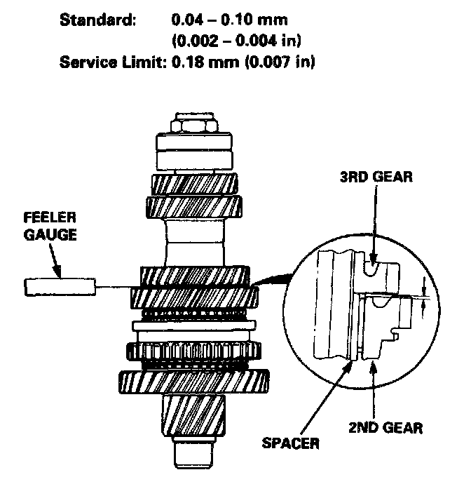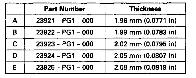 4. If the clearance is more than the service limit, select the appropriate spacer for the correct clearance from the chart below, and install it.