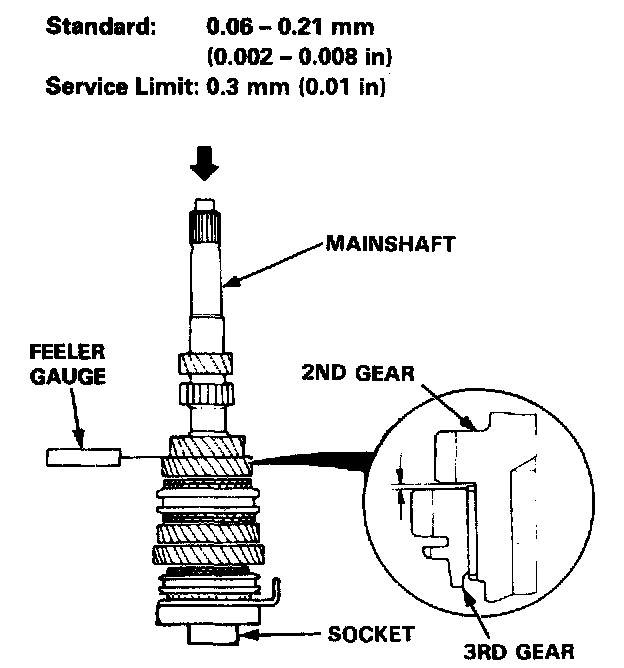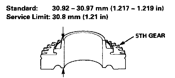 - If the thickness of 5th gear is less than the service limit, replace 5th gear with a new one.