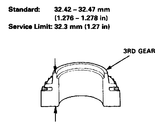 - If the thickness of 3rd gear is less than the service limit, replace 3rd gear with a new one.