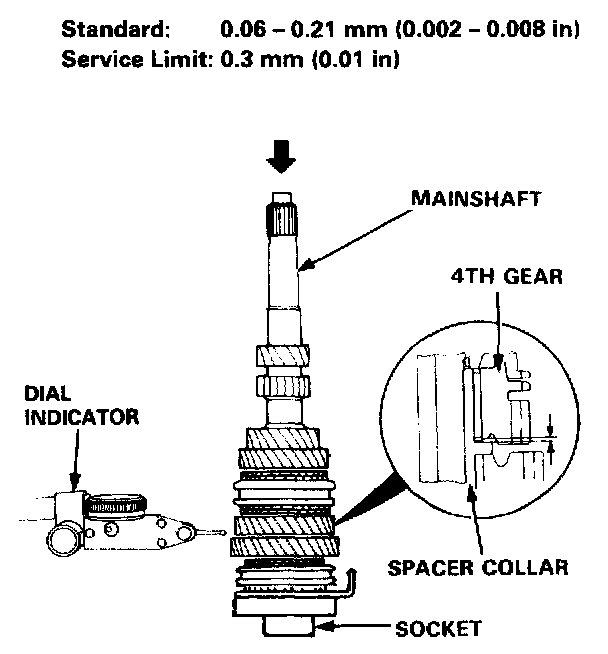 4. Measure the clearance between 4th gear and the spacer collar.