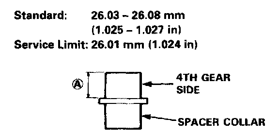 5. If the clearance is more than the service limit, measure distance (A) on the spacer collar.