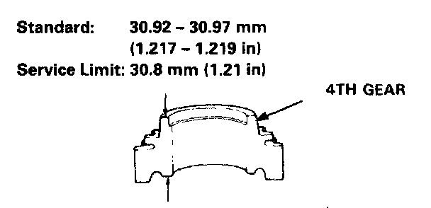 - If the thickness of 4th gear is less than the service limit, replace 4th gear with a new one.