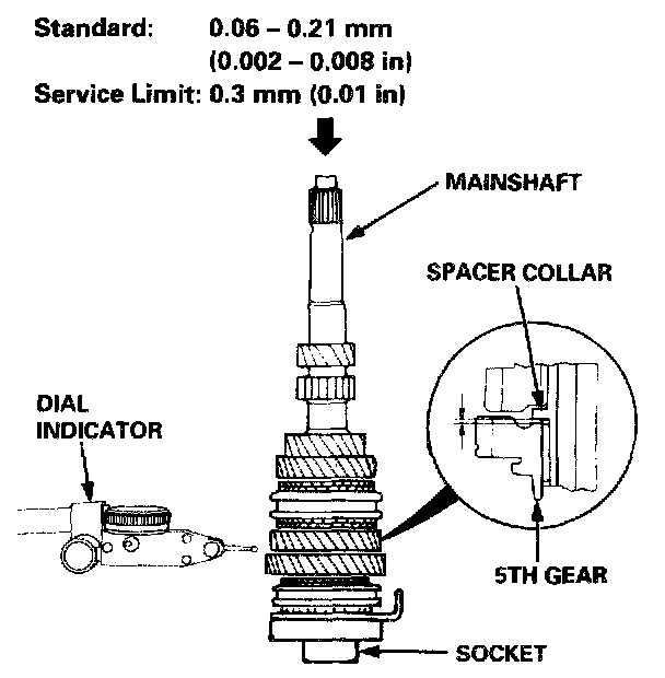 7. Measure the clearance between the spacer collar and 5th gear.
