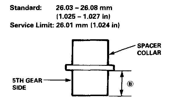 8. If the clearance is more than the service limit, measure distance (B) on the spacer collar.