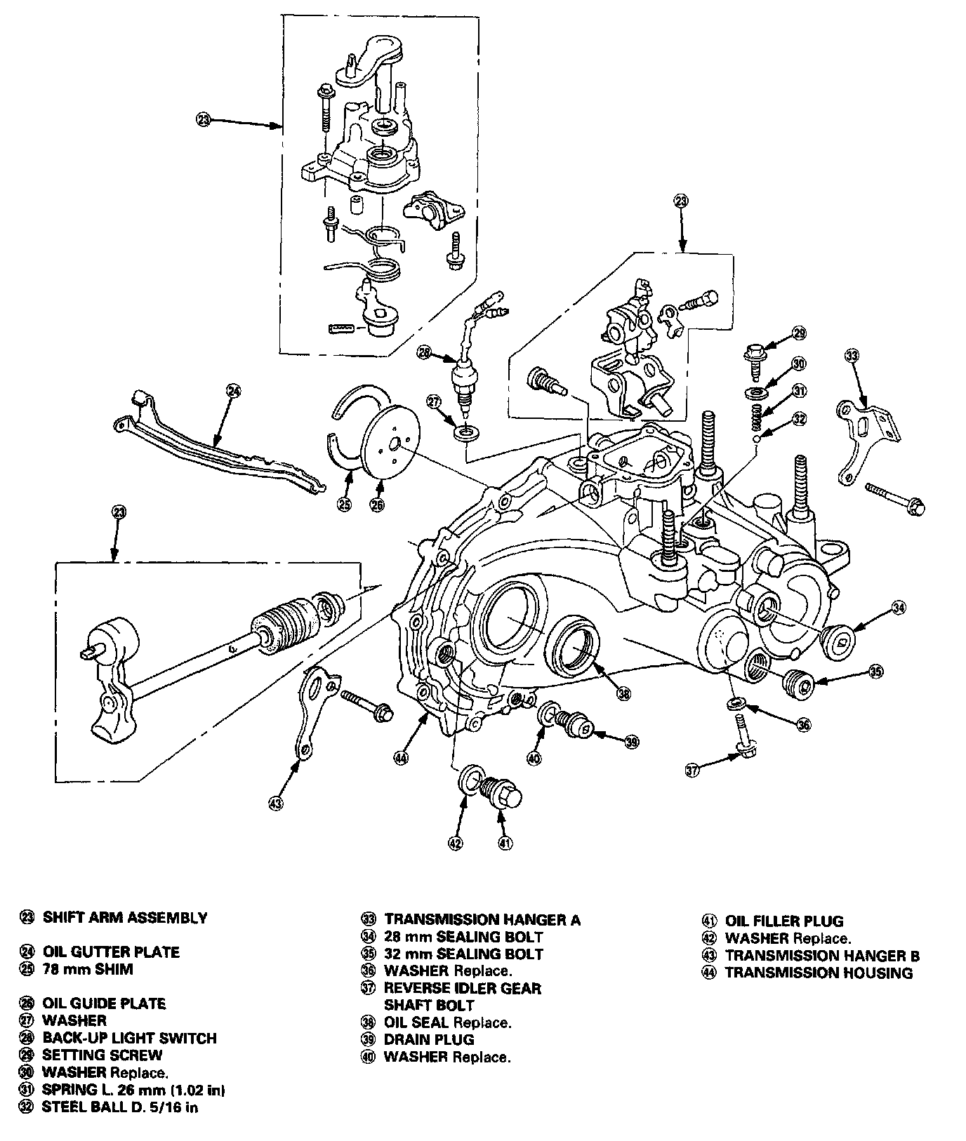 - This transmission uses no gaskets between the major housings; use liquid gasket (P/N 08718 - 0001).