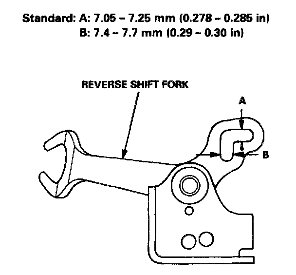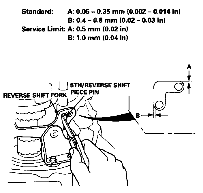 1. Measure the clearances between the reverse shift fork and 5th/reverse shift piece pin.