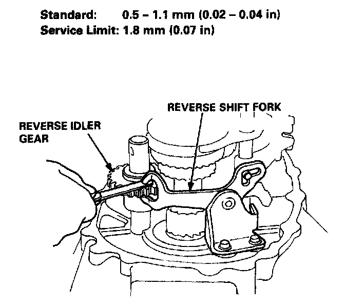 3. Measure the clearance between the reverse idler gear and reverse shift fork.