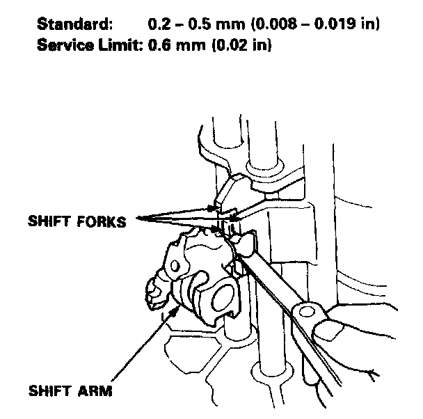 3. Measure the clearance between the shift fork and the shift arm.