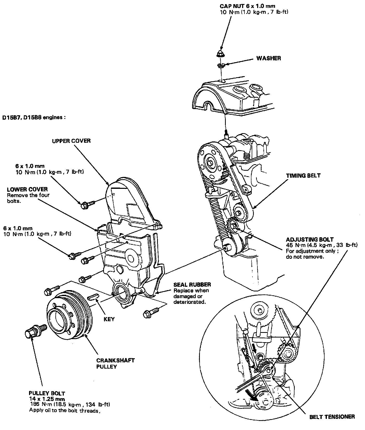 6. Adjust the timing belt tension. (Refer to Timing Belt Adjustments)