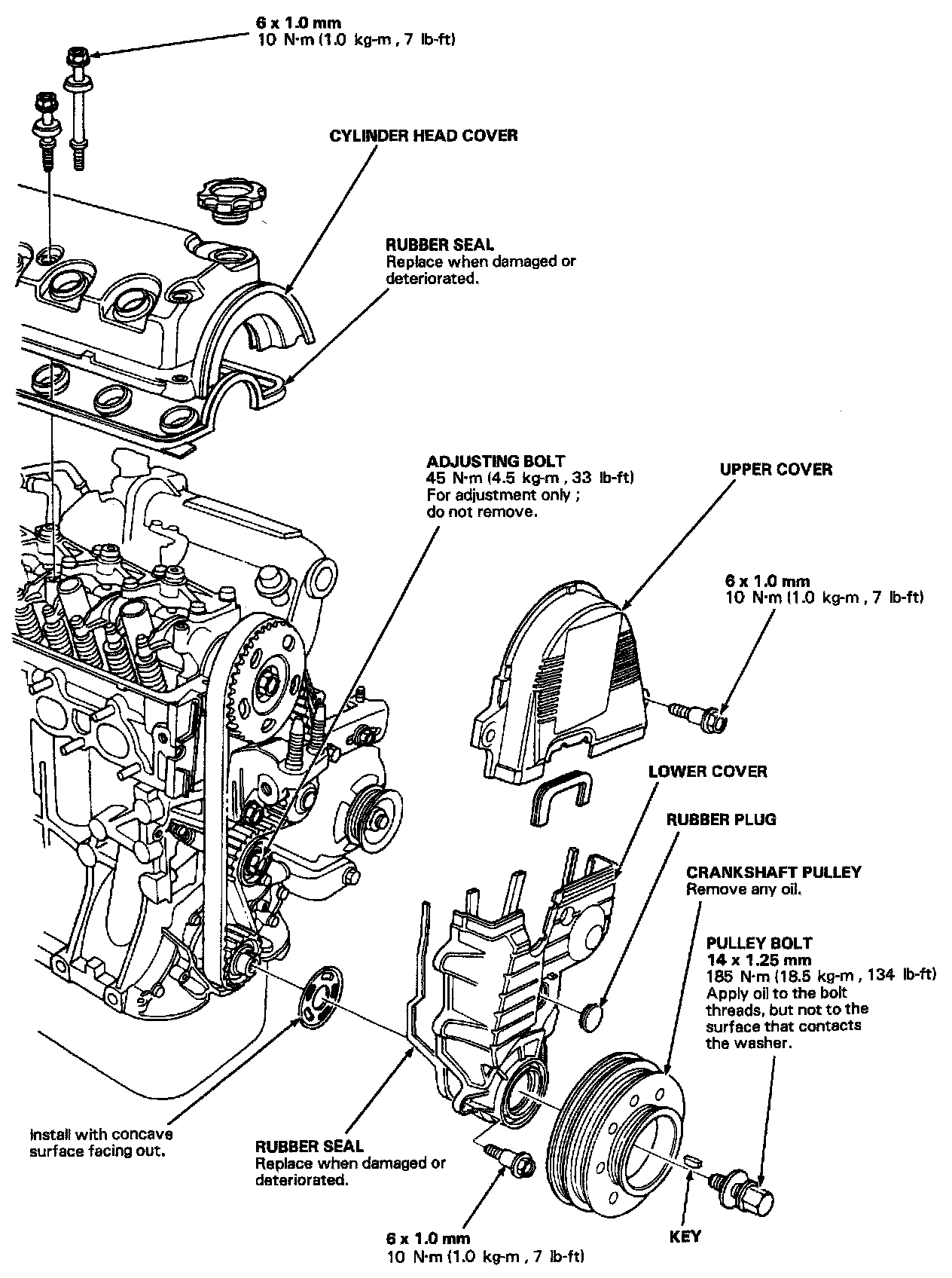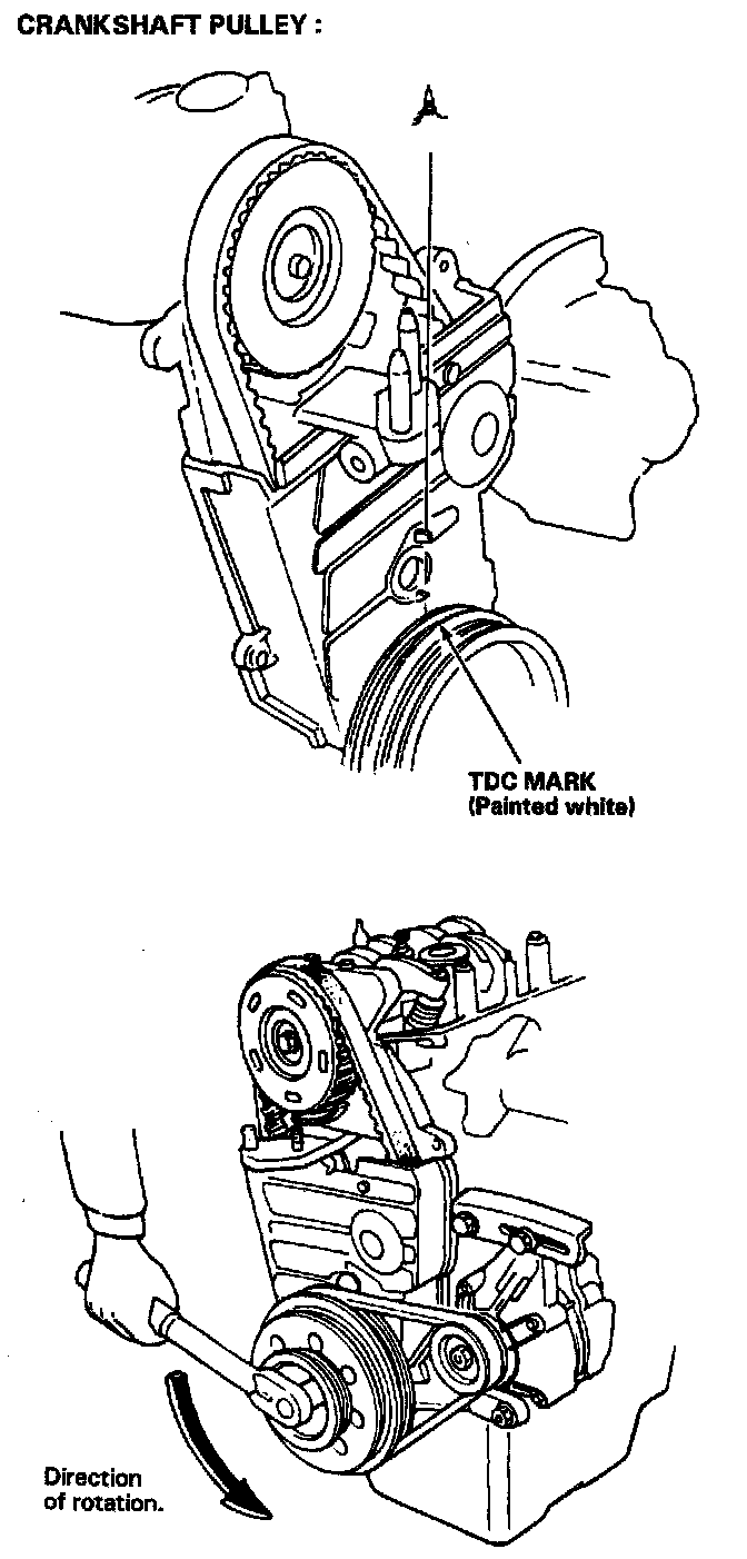 D16Z6 engine: Align the TDC mark on the camshaft pulley with pointer on the back cover.
