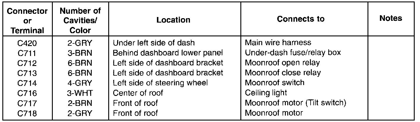 Moonroof Wire Harness: