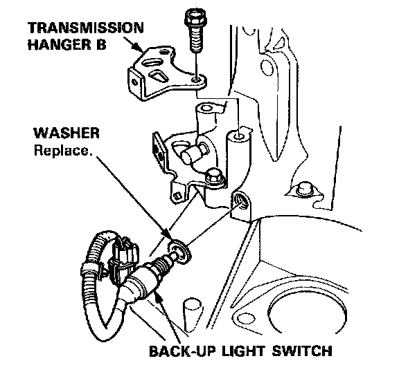 NOTE: Place the clutch housing on two pieces of wood thick enough to keep the mainshaft from the hitting the workbench.1. Remove the back-up light switch.