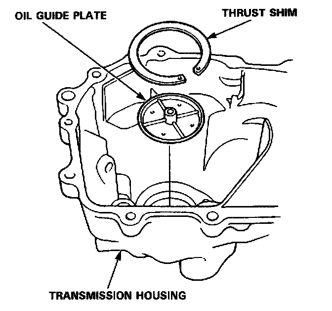 7. Remove the thrust shim and oil guide plate from the transmission housing.