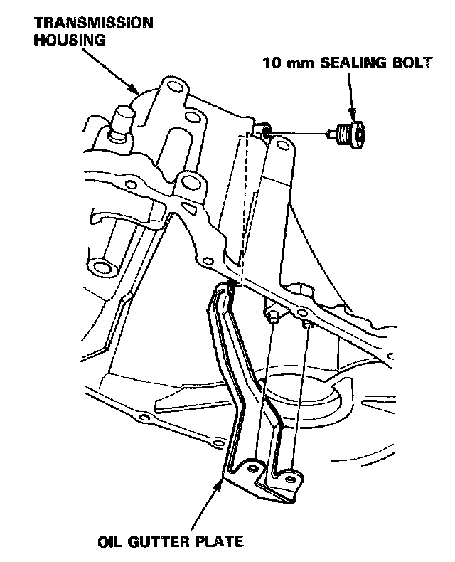 8. Remove the 10 mm sealing bolt and oil gutter plate.