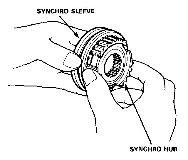 2. Install each synchro hub in its mating synchro sleeve and check for freedom of movement.
