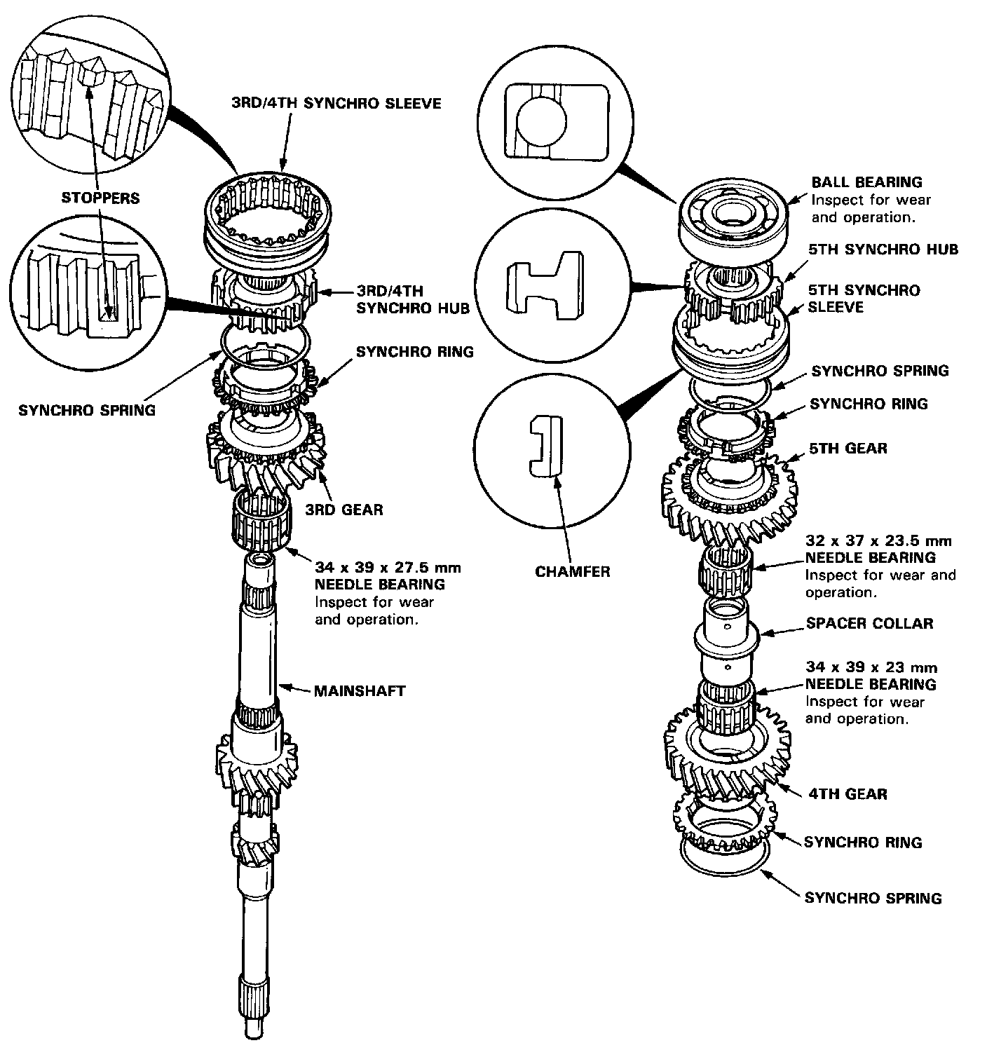 NOTE: The 3rd/4th and 5th synchro hubs are installed with a press.