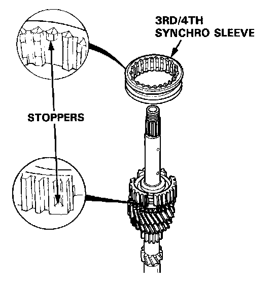 2. Install the 3rd/4th synchro sleeve by align the stoppers of the 3rd/4th synchro sleeve and hub.