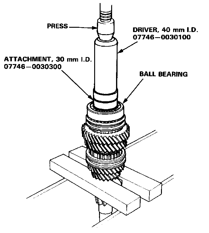 NOTE:- When installing the 3rd/4th and 5th synchro hubs, support the shaft on the steel blocks and install synchro hubs using a press.