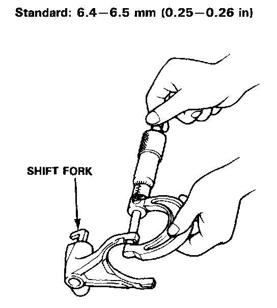 2. If the clearance exceeds the service limit, measure the thickness of the shift fork fingers.