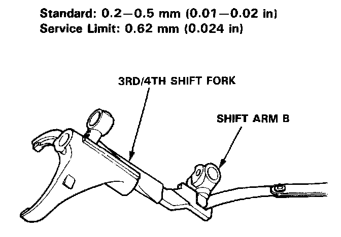 4. Measure the clearance between the 3rd/4th shift fork and shift arm B.