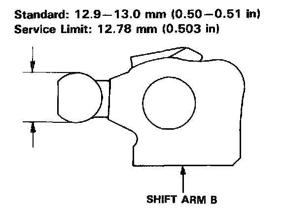 6. If the width of the shift arm B is less than the service limit, replace the shift arm B with a new one.