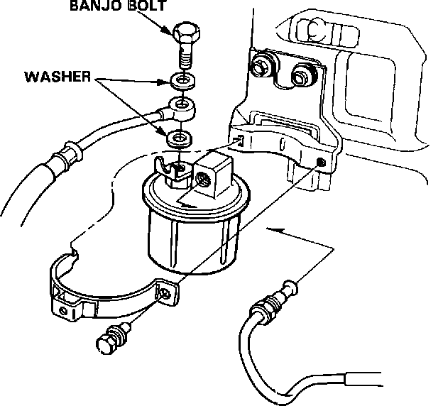 Replaceable paper element type, contained in metal cannister with threaded adapters for inlet and outlet hoses. A service bolt is supplied so system pressure can be relieved prior to servicing.