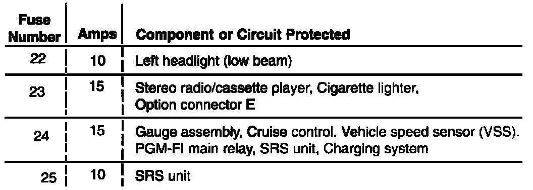 Fuse/Relay Information- Under-Dash Fuse/relay Box: