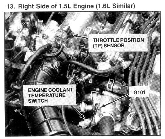 Coolant Temperature Sensor/Switch (For Computer): Locations
